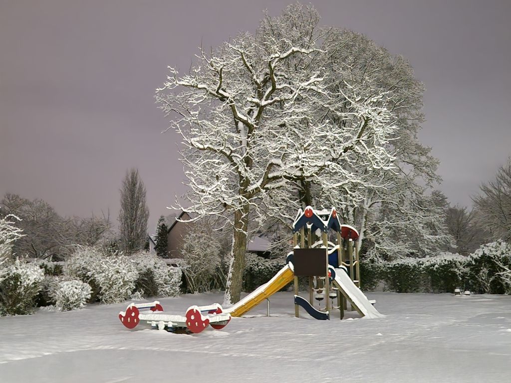 Es hat geschneit und unser Schulhof wurde von einer dicken weißen Schneedecke bedeckt. Wunderschön unberührt.