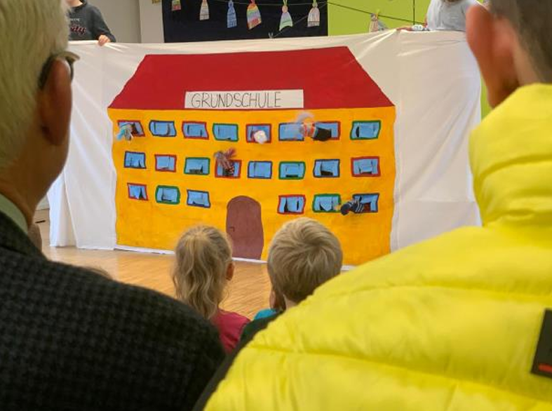 Am vergangenen Donnerstag war die Junge Oper mit dem Musiktheater „Hänsel und Gretel“ in der alten Turnhalle bei uns zu Gast. Dieses Jahr haben wir uns für den Besuch dieses Weihnachtstheaters entschlossen und wurden mit einer prima inszenierten Aufführung belohnt. Nicht nur Mitmachlieder gab es, nein, tatsächlich fand sich neben Xenia, Nora, Julian, Louis, Maja, Sinja, Mats, Alice, Sophia und Menna noch unsere Frau Müller auf der Bühne und spielten mal eben in der Aufführung mit … Komplimente und Applaus gab es reichlich!
